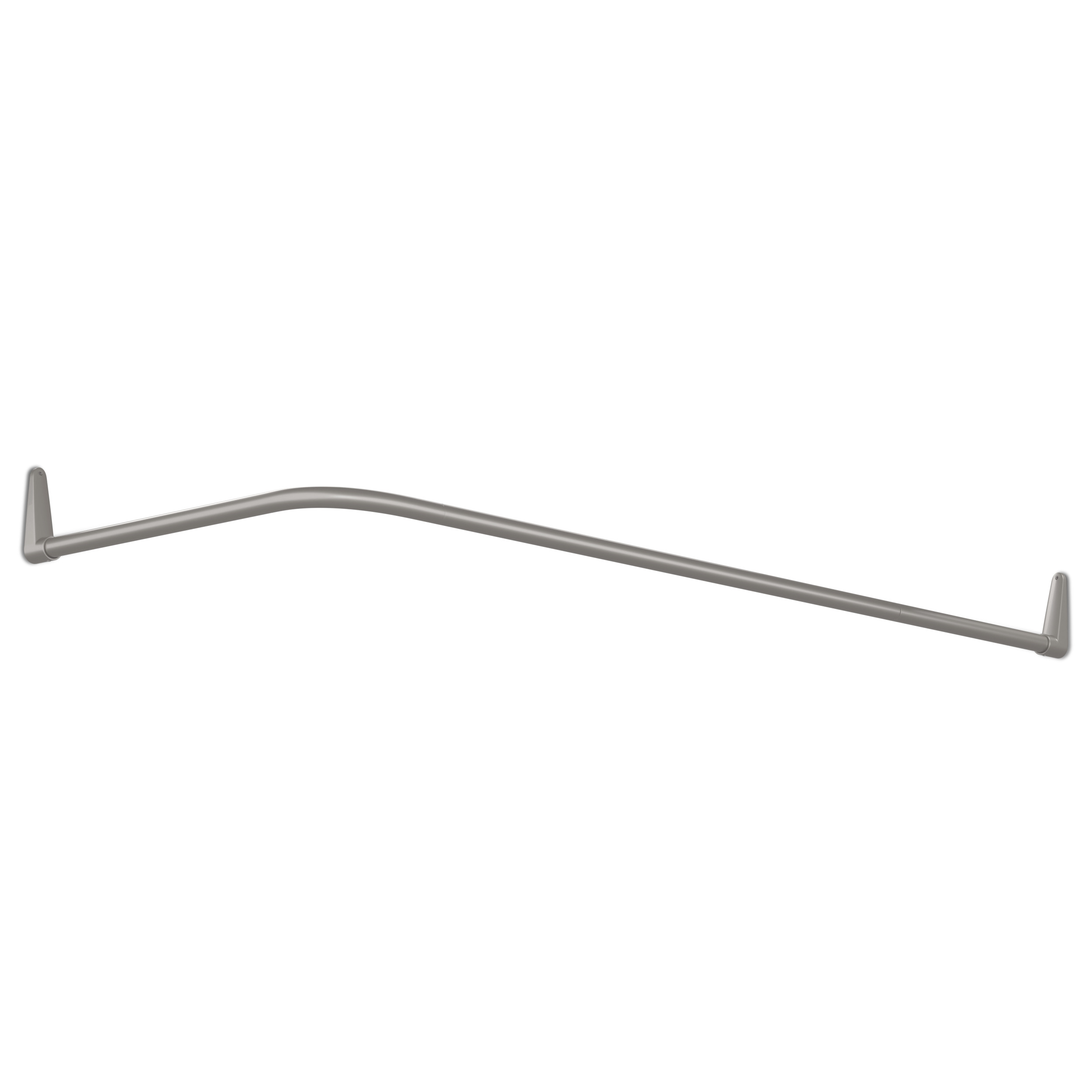 Duschdraperistång Vinklad finns i två färger där duschdraperistången är tillverkad i pulverlackerat stål i vitt eller grått.