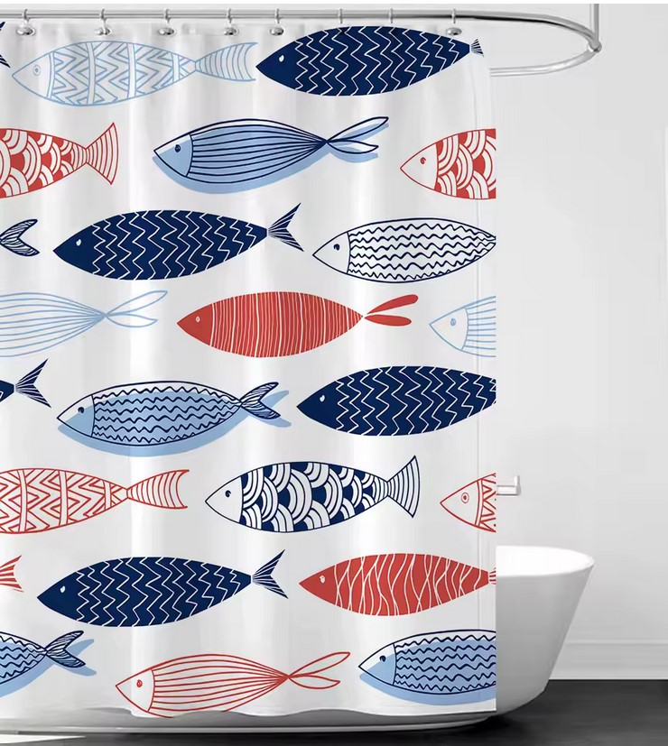 Fixa stämningen i badrummet med Duschdraperi Fisk som är ett duschdraperi mönstrat i fina och harmoniska färger. Duschdraperi Fisk kommer komplett med duschdraperiringar.